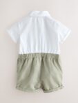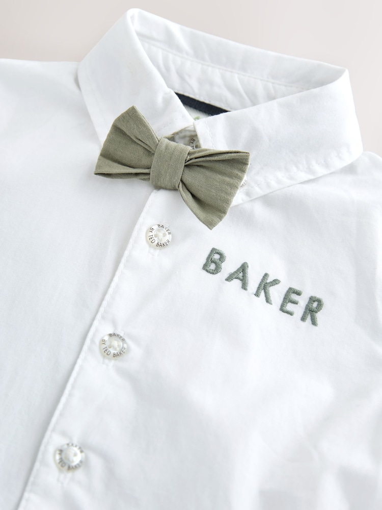 Keep your little one looking dapper for any special occasion with the Baker by Ted Baker Textured Smart Romper. This sophisticated all-in-one ensemble features a crisp white polo shirt upper with branded pearl buttons and a coordinated green-coloured textured short. The smart design is elevated by a charming bow tie and signature branded TB embroidery on the chest and the lower hem of the short.