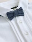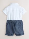 Keep your little one looking dapper for any special occasion with the Baker by Ted Baker Textured Smart Romper. This sophisticated all-in-one ensemble features a crisp white polo shirt upper with branded pearl buttons and a coordinated navy-coloured textured short. The smart design is elevated by a charming bow tie and signature branded TB embroidery on the chest and the lower hem of the short.