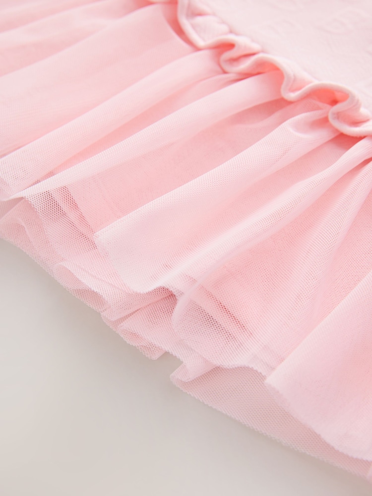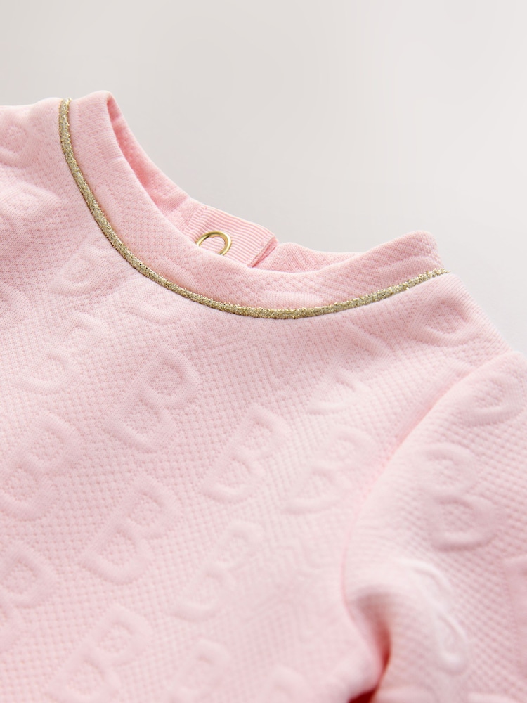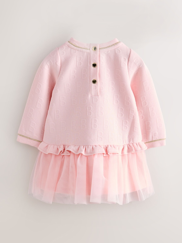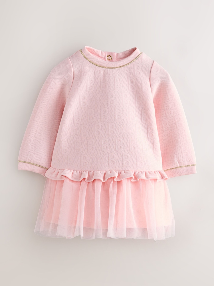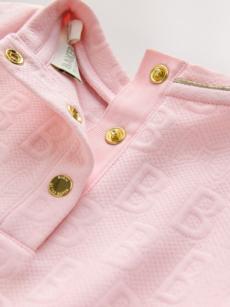 She’ll be cute and comfy in this adorable jacquard dress from Baker by Ted Baker. This cute piece comes in a soft jacquard embossed fabric, with branded B’s all over. It also features a soft tulle mesh hem. Details include glitter trims and branded button poppers at the back neck.