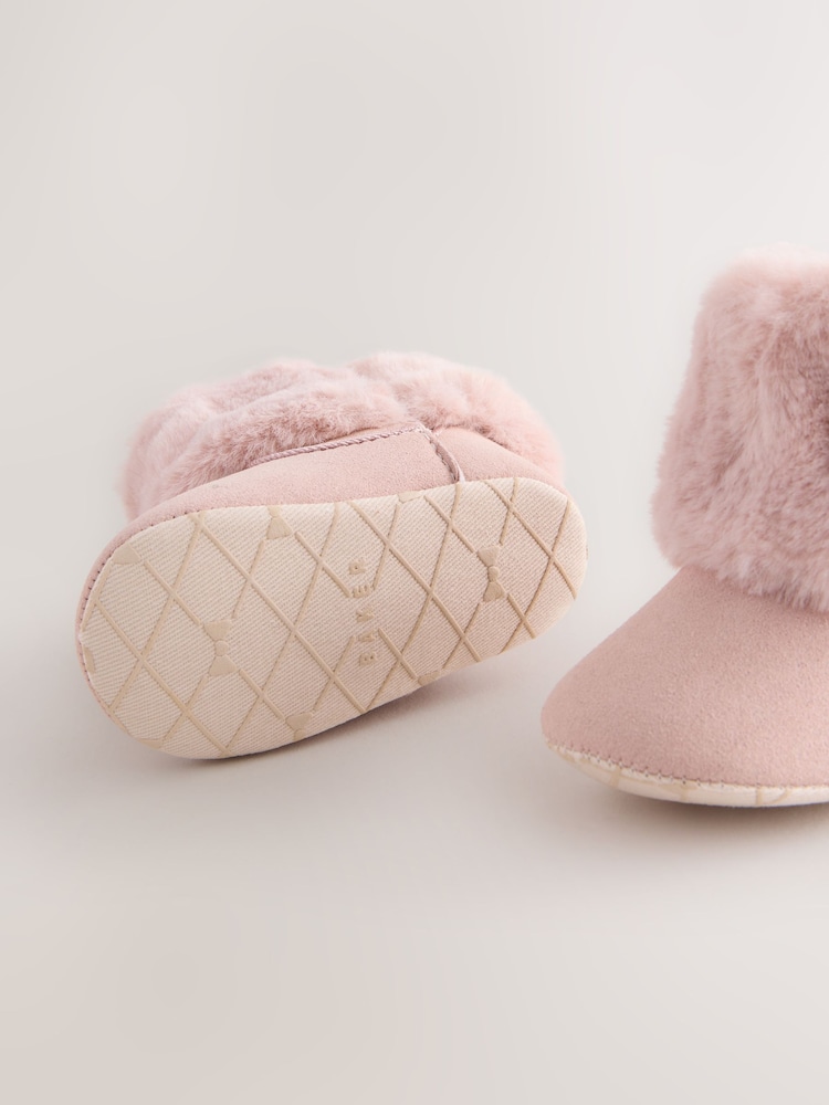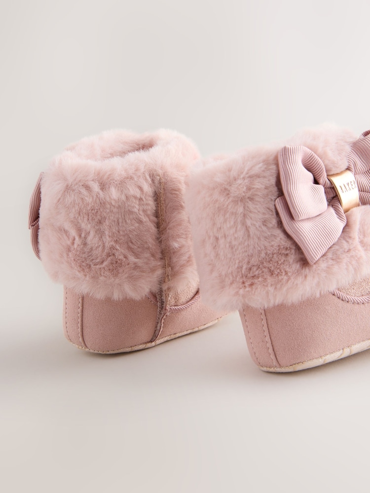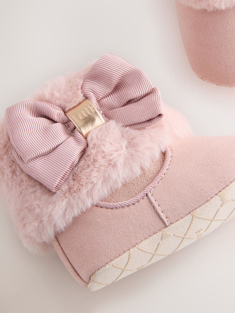 Wrap her tiny feet in luxurious comfort with the Baker by Ted Baker Baby Girls Faux Fur Trim Padder Boots. These enchanting boots feature a sumptuously soft faux fur inner and trim lining, ensuring her little toes stay warm and cosy. A pretty branded Baker bow adds an adorable touch of designer charm, perfectly complemented by the subtle branded Baker trims. Designed for delicate steps, these padders boast a soft sole, making them ideal for keeping her comfortable and stylish during those precious early months.