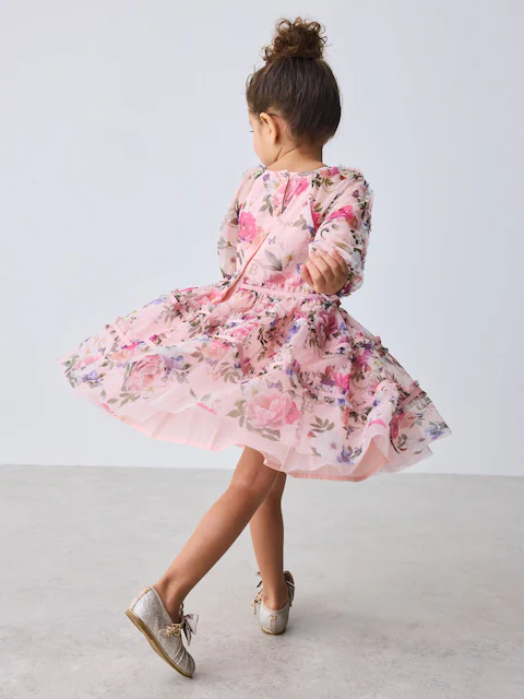 Bring a touch of charm to her wardrobe with this gorgeous floral dress from Baker by Ted Baker. Crafted from a delicate light pink chiffon fabric, the dress showcases a beautiful all-over print featuring lush florals, and ruffled tiers.