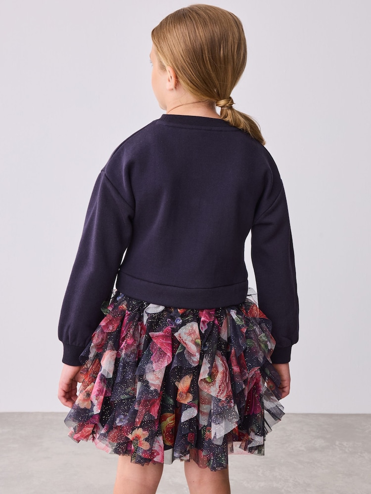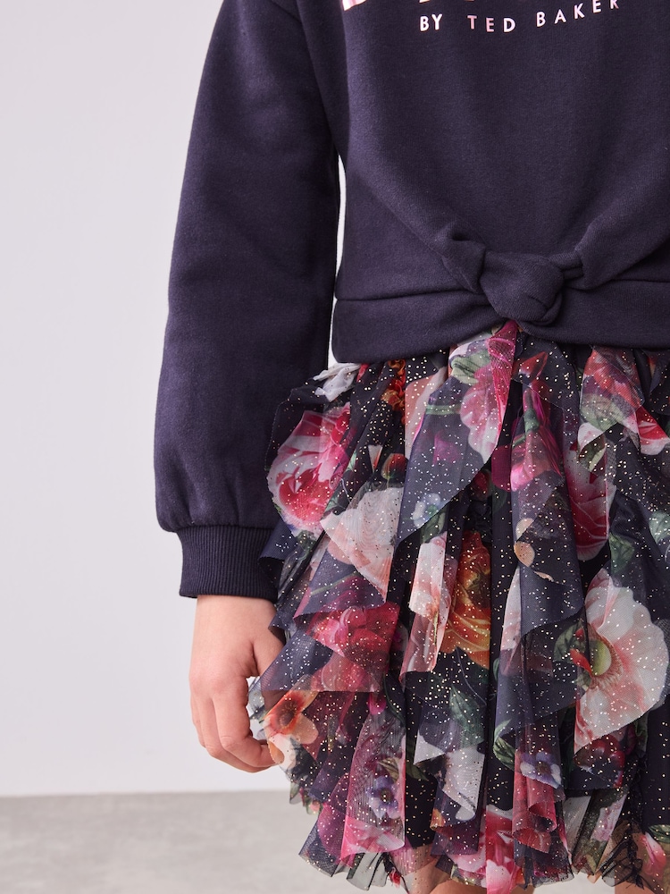 Elevate her winter wardrobe this season with this gorgeous mesh mockable sweat dress from Baker by Ted Baker. This mockable design features a soft brushback cotton body, with a floral tier skirt in a gorgeous speckled mesh. The dress features our iconic Baker branding in foil across the chest. Pair with either boots or trainers for any occasion.