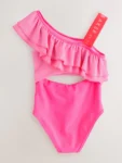 Get her ready for the heat with this pretty frill swimsuit from Baker by Ted Baker. This gorgeous holiday staple comes in a bright and colourful two-toned pink, featuring a frill feature going across the chest leading to the shoulder, with a branded Baker elastic strap on the other side. The swimsuit also features a trendy cut-out design across the waist. Pair with our summer sandals to get her ready for the sun!