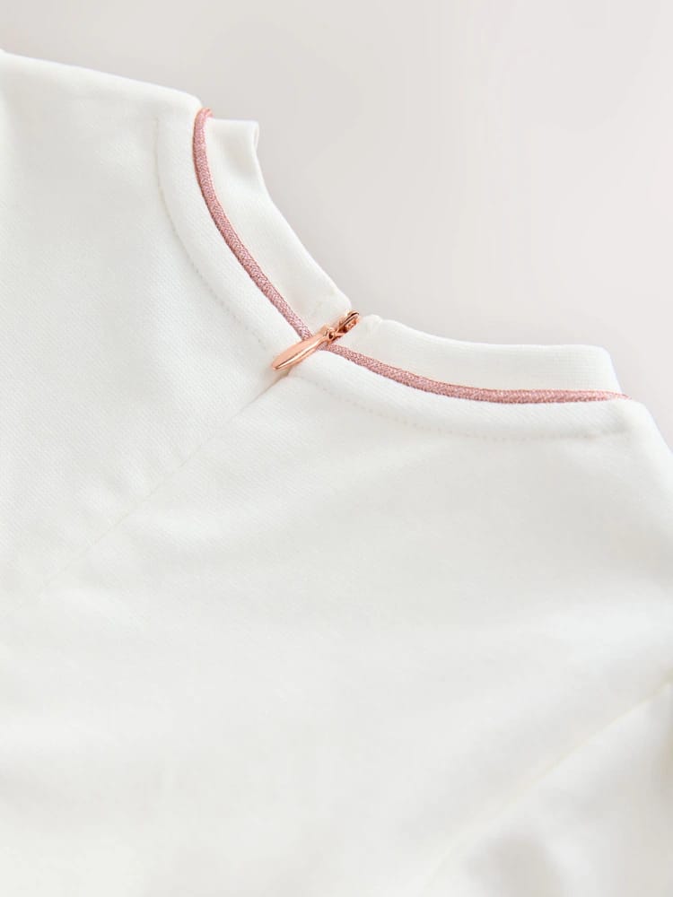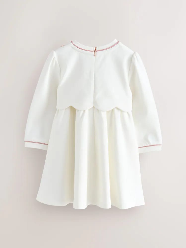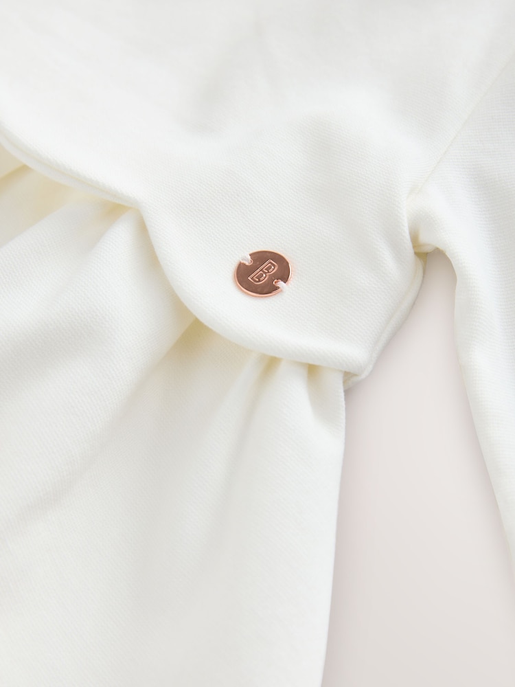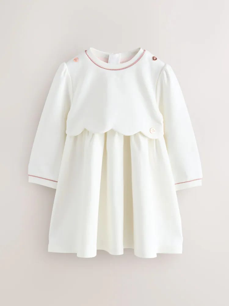 A cute dress your little one will adore, this beautiful scallop detail dress from Baker by Ted Baker comes in a soft ponte fabric, and features a scallop edge detail, with gold trims and branded Baker hardware.