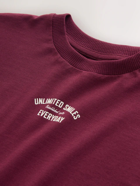 Power up his everyday look with this fun Berry RedvSlogan printed short sleeve T-shirt, perfect for comfortable casual wear and action-packed playtime. Featuring a cool back print slogan and a smaller detail on the chest pocket, this top is a stylish choice for any young mind.