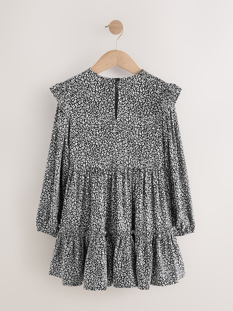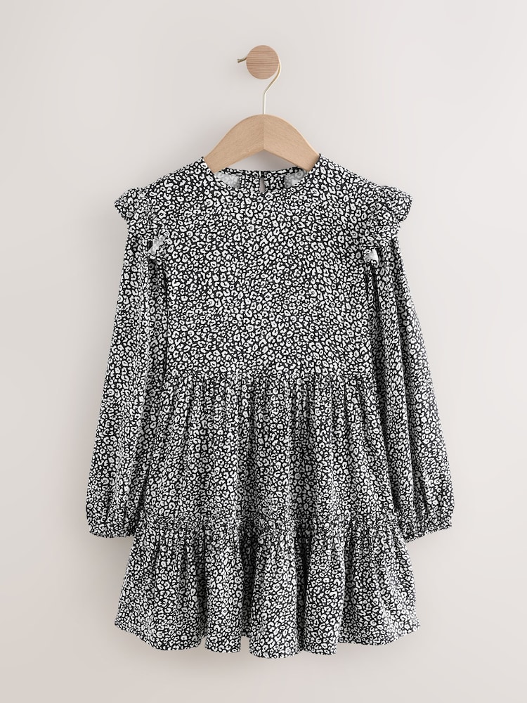 Black/White Long Sleeve Ruffle Dress