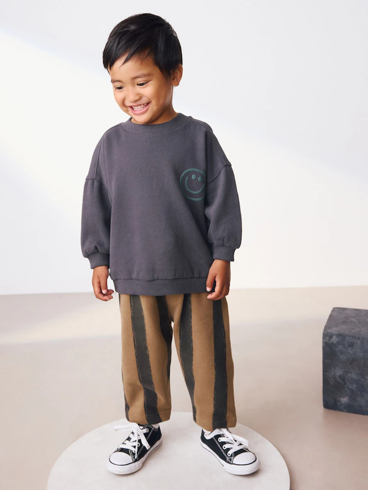 Our sweatshirt and stripes joggers set was made for having effortless styling. This two-piece set is made from breathable cotton and features a black sweatshirt and stripey printed joggers. Perfect for his outdoor adventures, add this to his rotation for a seamlessly stylish look.