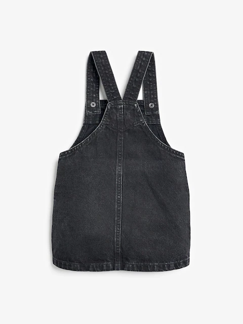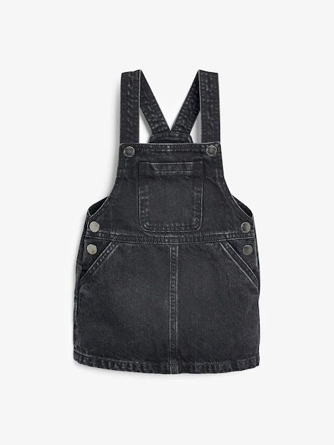 Perfect for play, your little lady will love our charming denim pinafore dress. This classic Black dress is made from soft cotton, with pockets, and is fitted with metal popper button fastenings on the front and side. layer it up over a t-shirt and with her favourite trainers for the ideal playtime outfit.