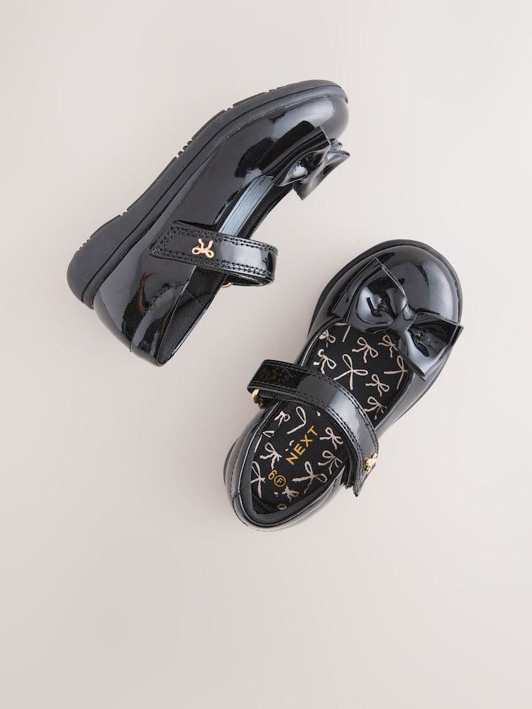Black Patent Wide Fit (G) Bow Mary Jane School Shoes