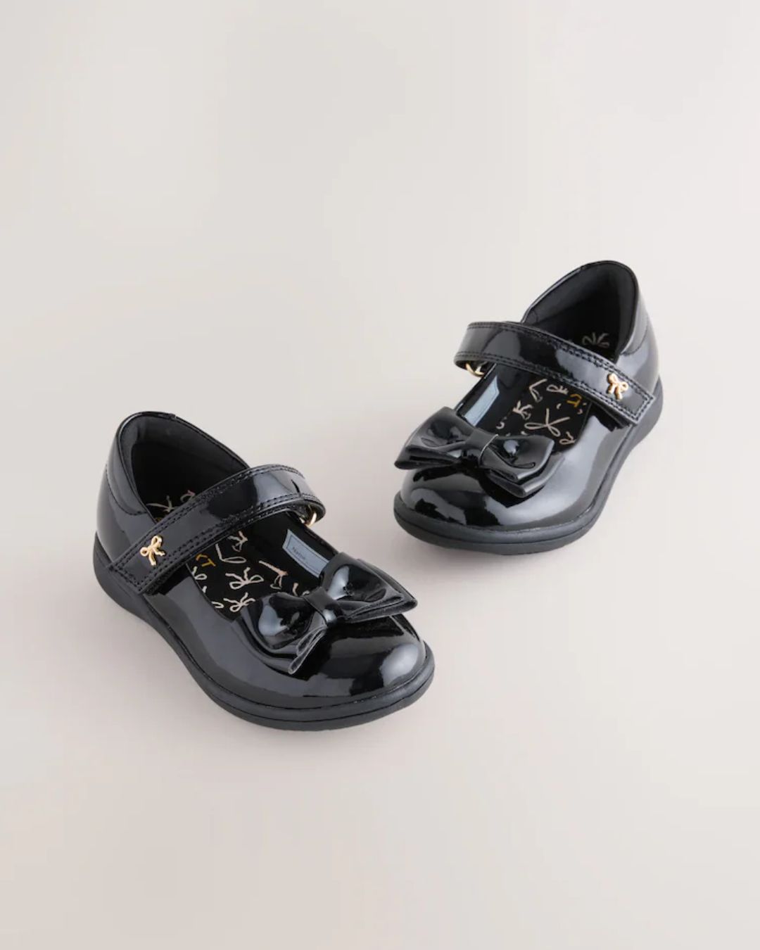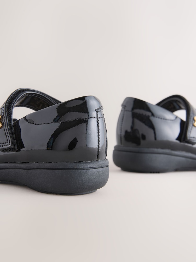 Available in a standard (F) or wide (G) fit, these shiny, smart and stylish school shoes have a classic Mary Jane design with a scuff-resistant and easy clean upper. A 3D bow sits at the toe, with a touch-fastened strap for a secure fit and a gold-tone bow, boasting a cushioned lining for all-day comfort.