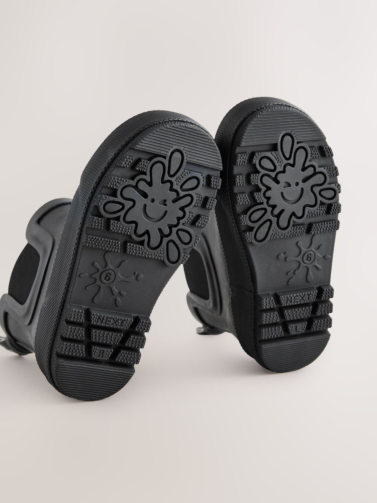 Designed with a faux fur lining for added warmth, these ankle wellies in black plain are perfect for all their outdoor adventures this season. In an easy pull-on style with a pull tab to the heel and elasticated gusset, they’ll love being able to jump around in the wet and mud while wearing these stylish wellies.