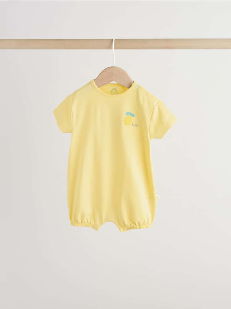 This set of 3 short-sleeved jersey rompers feature popper fastening for easy changing.