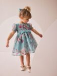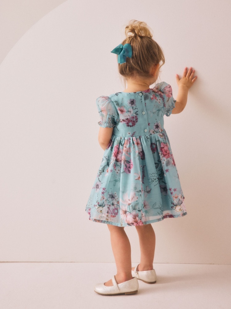 Get her ready for an important job on the big day, with this beautiful flower girl dress. Made from a soft organza fabric with a cotton lining, the dress features delicate corsage detailing, short puff sleeves and a button fastening to the back.