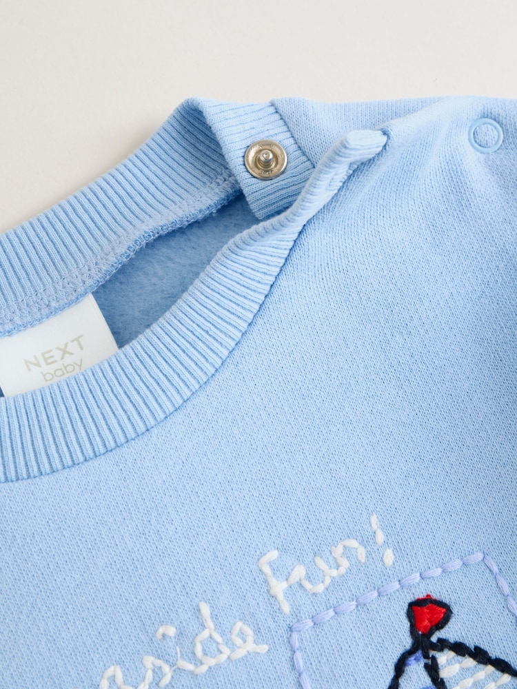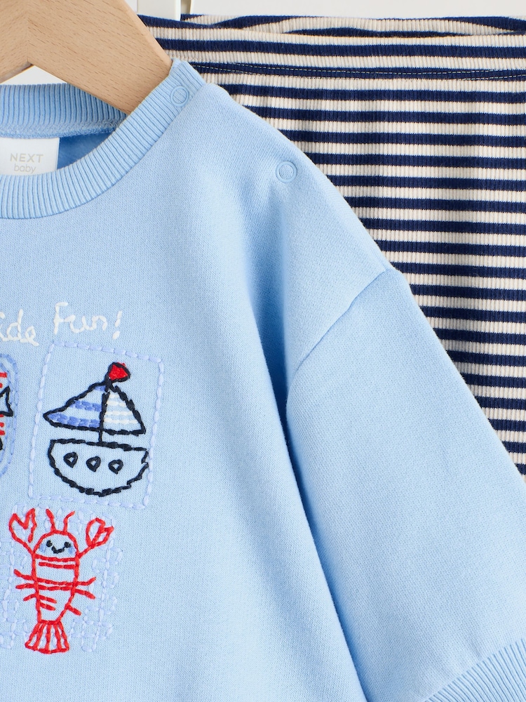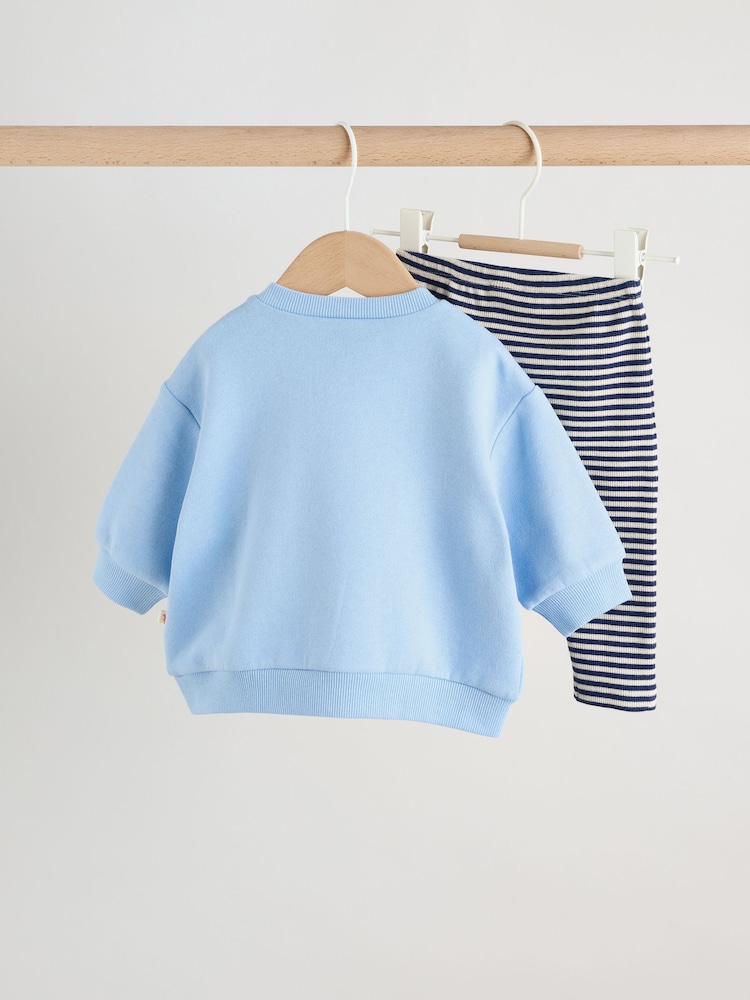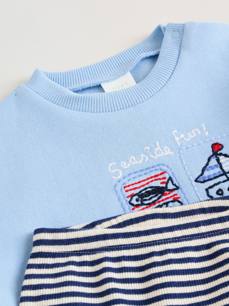 This Blue Nautical print 2-piece set is perfect for keeping your little one looking cool and feeling comfy, featuring a crew neck delicate stab stitch nautical detail sweatshirt with a popper fastening alongside a pair of printed leggings with an elasticated waistband.