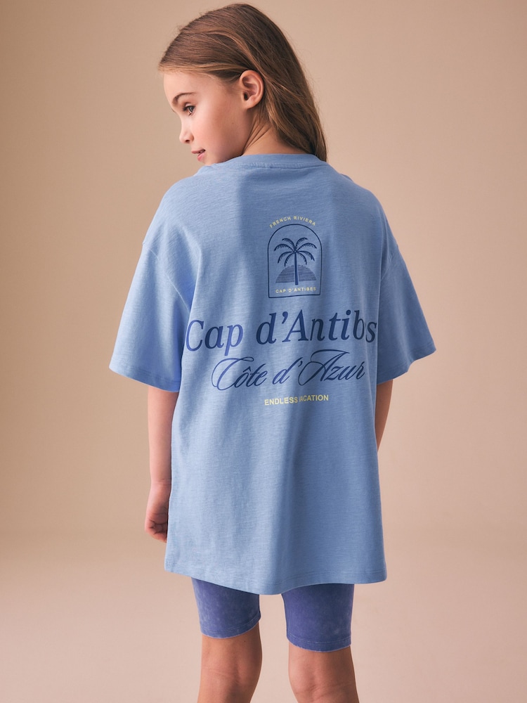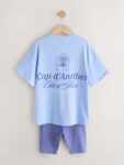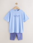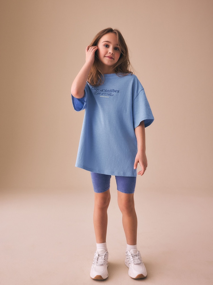 Blue Slogan T-Shirt and Cycle Shorts Set