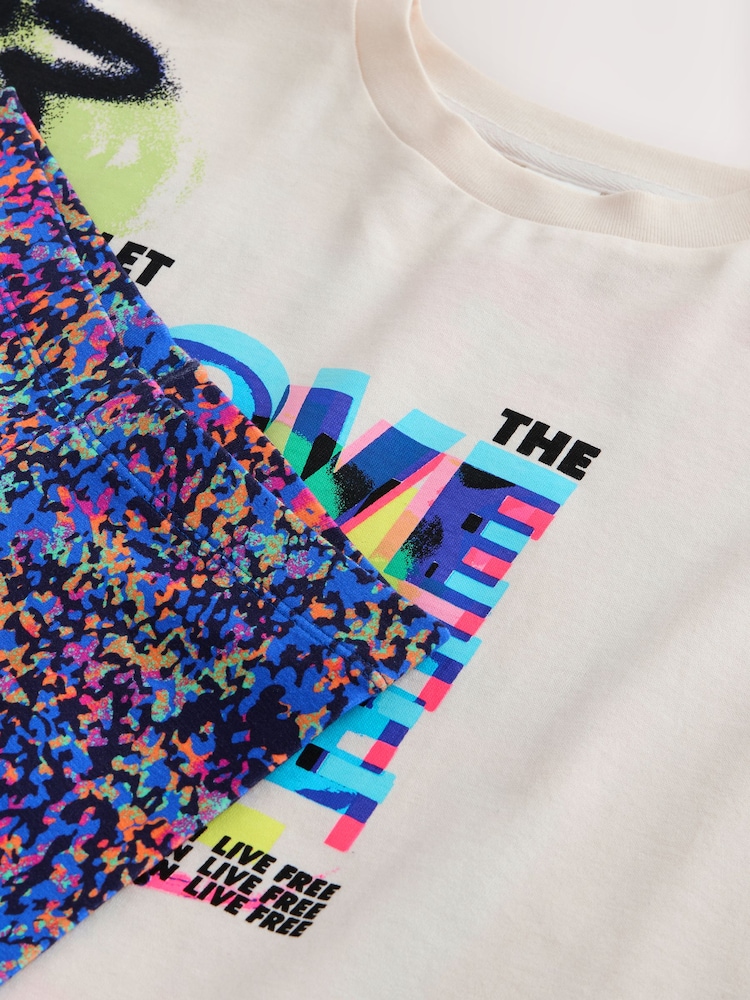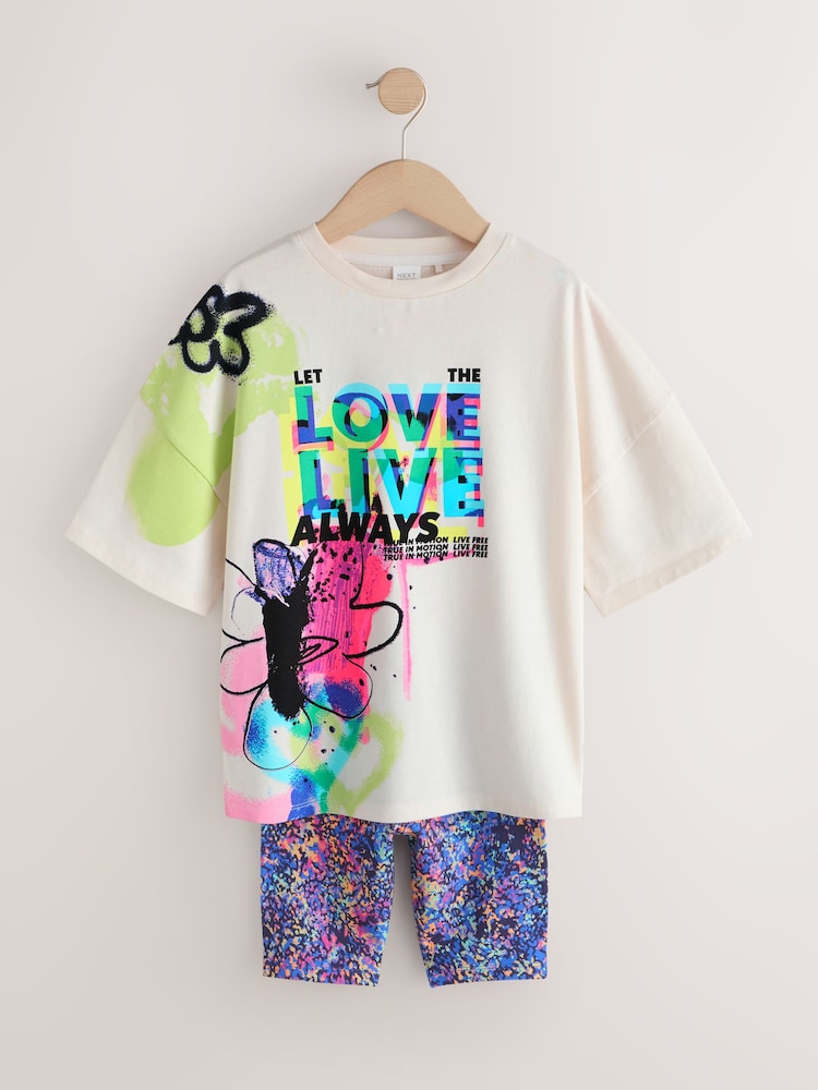 This comfortable top and short set is designed for active days and easy movement. The complete outfit features a versatile top paired with cycle short leggings.