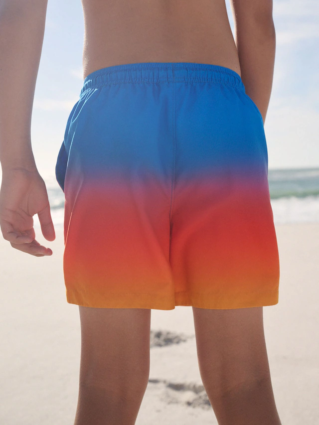 He’ll hit the beach in confidence with these stylish Blue and Orange Ombre swim shorts, featuring an elasticated waistband with an adjustable drawstring, with zippered side pockets to keep goggles and other small accessories safe.