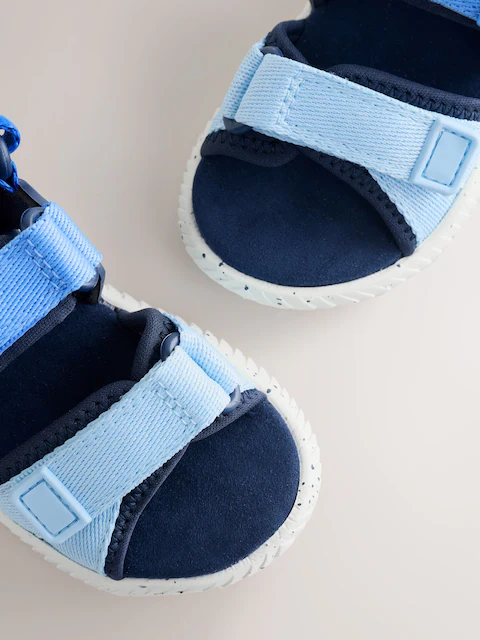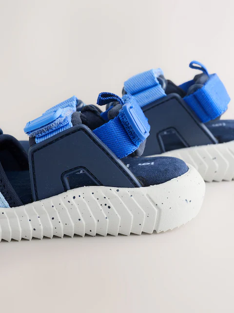 With a retro-inspired trekker design, these blue utility sandals are ready for exploring, featuring a secure triple touch-fastened strap upper with an open toe, a textile lining and a chunky outsole with a ripple tread.