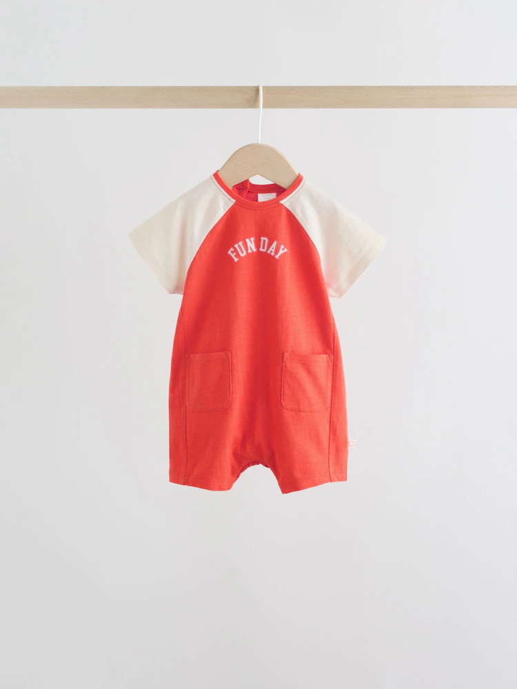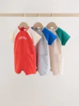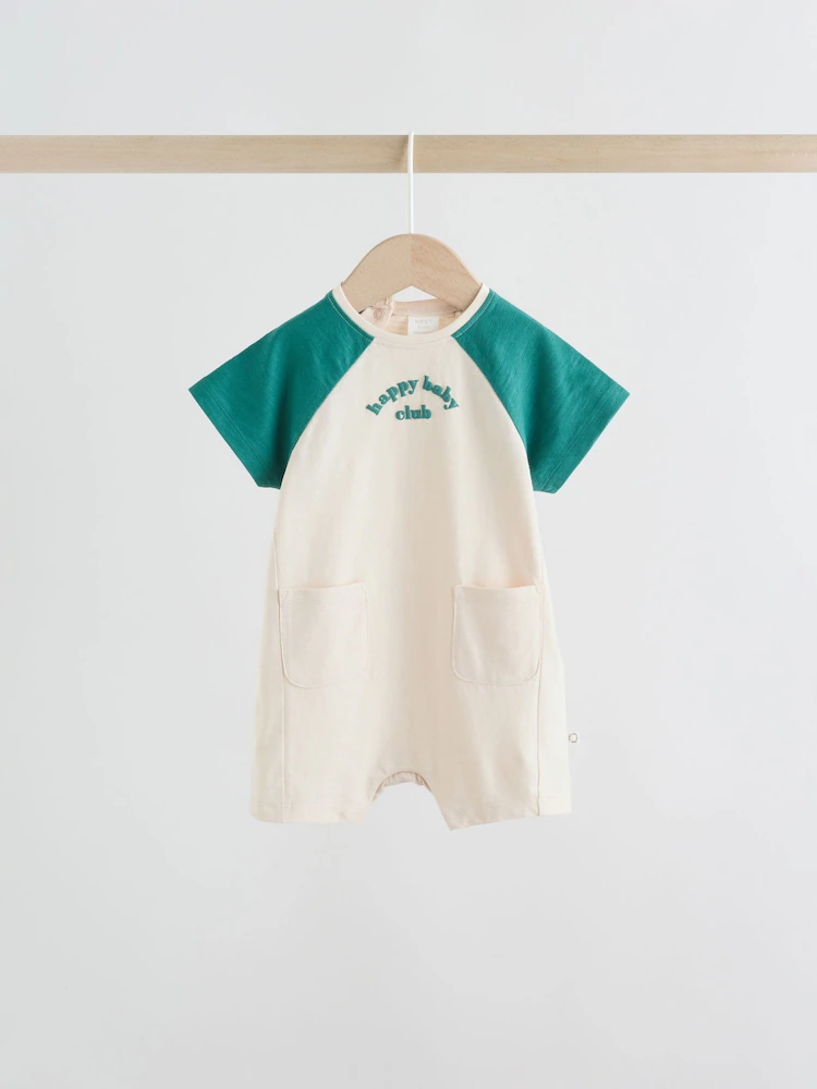 Keep your little one ready for playtime with this bright jersey baby rompers 3 pack, offering a variety of fun and vibrant options for everyday wear. Each romper is designed with comfortable short sleeves and short legs, featuring a sporty raglan sleeve design for a relaxed fit. Crafted from soft jersey fabric, these rompers are perfect for keeping baby cool and comfortable throughout the day.