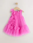 This cheerful Bright Pink Bows Sleeveless Mesh Dress is a perfect showstopper for her next party. Designed with playful mesh bow attachments and a floaty tiered hem shape, this dress also features a practical sleeveless design with button back fastening for easy dressing.