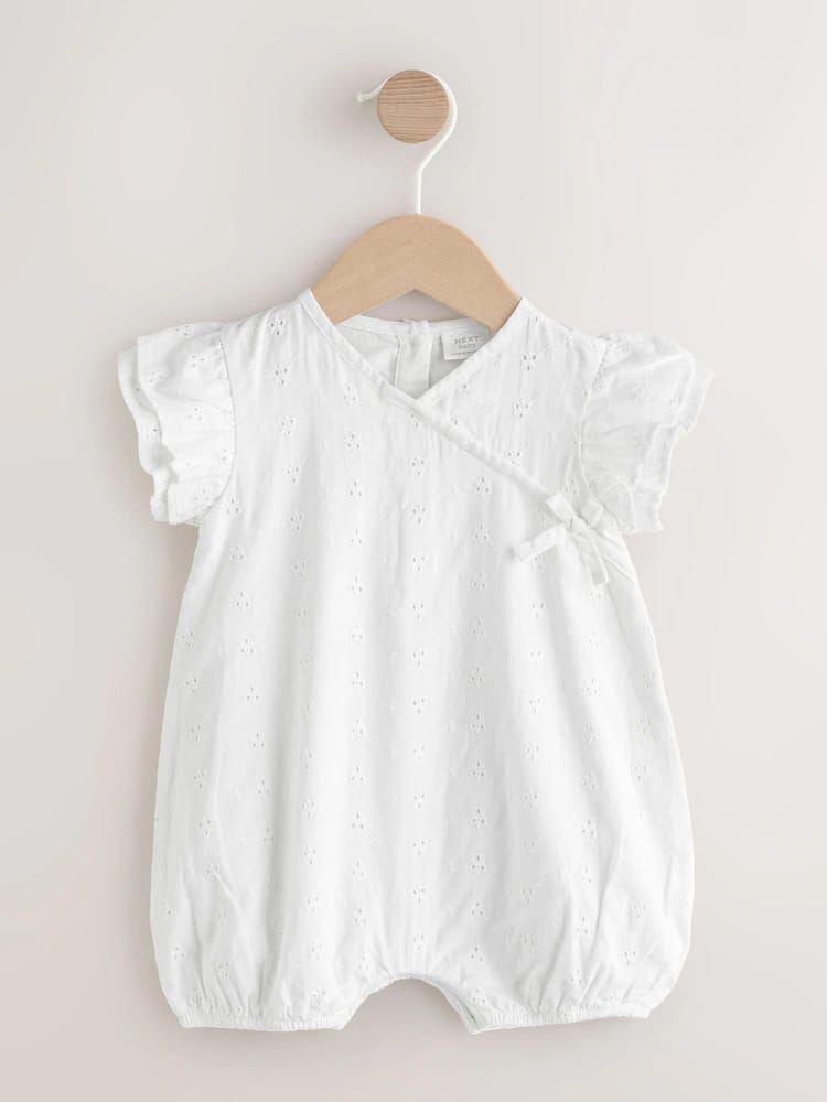 This broderie baby romper features a frill detail and poppers for easy dressing.