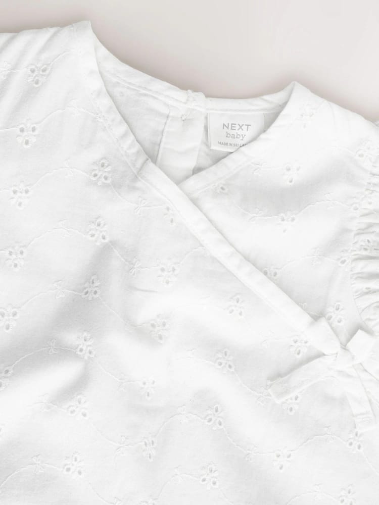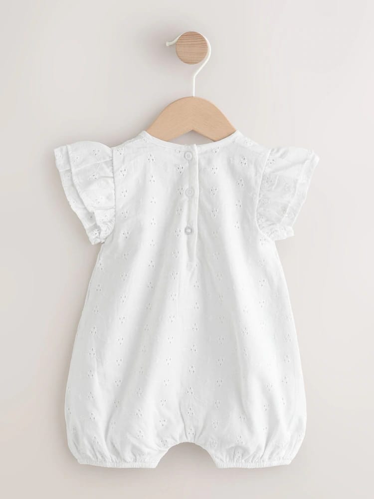 This broderie baby romper features a frill detail and poppers for easy dressing.