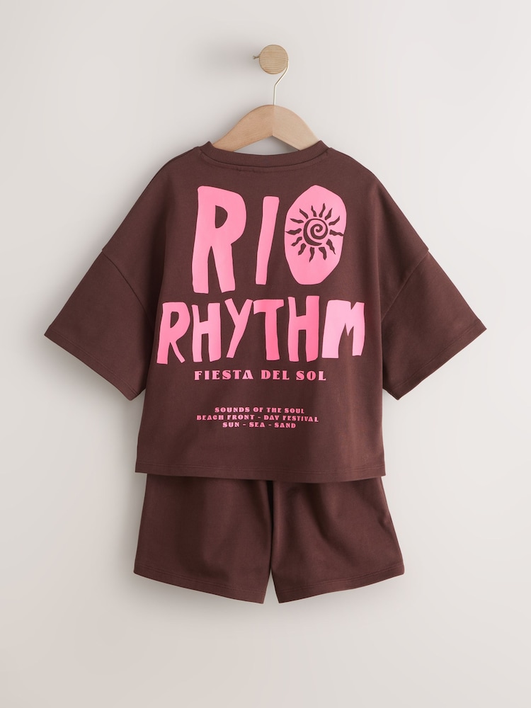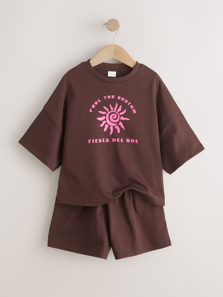 This Brown and Pink Heavyweight T-Shirt and Shorts Set is a complete outfit designed in a relaxed, comfort fit.