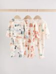 This 3-pack of sleepsuits is perfect for keeping them stocked up in sleepwear, made from super soft cotton with a 2-way zip fastening for easy changing. Each sleepsuit has inner lined feet, with turn-back scratch mitts up to 3-6 months and an anti-slip sole print from 9-12 months.