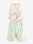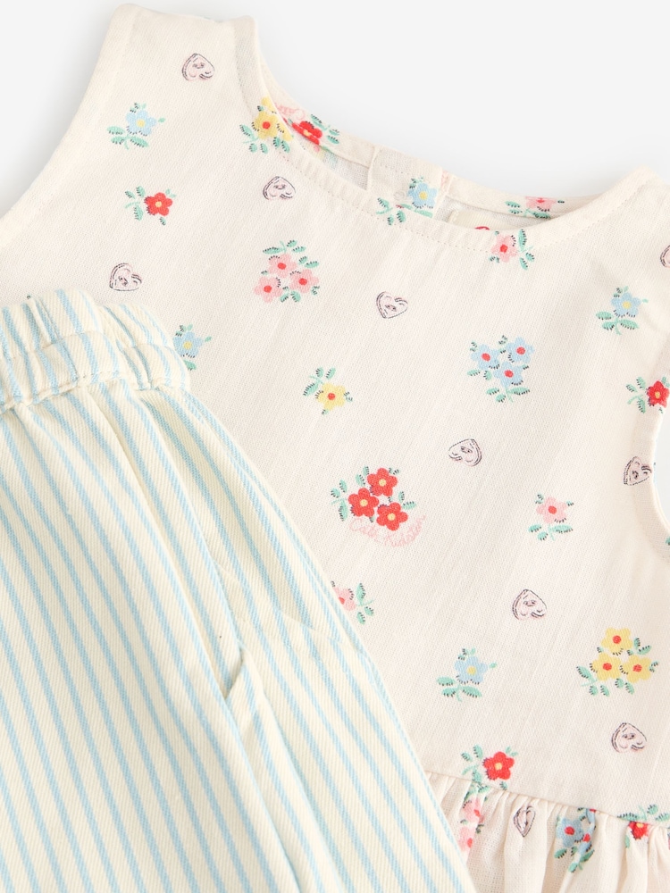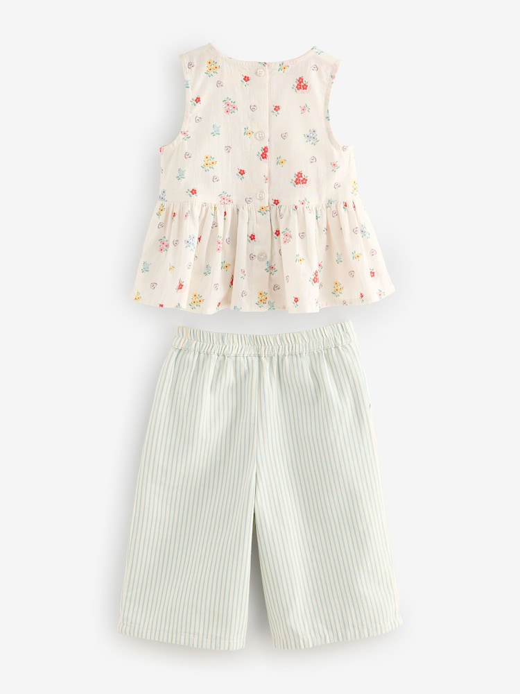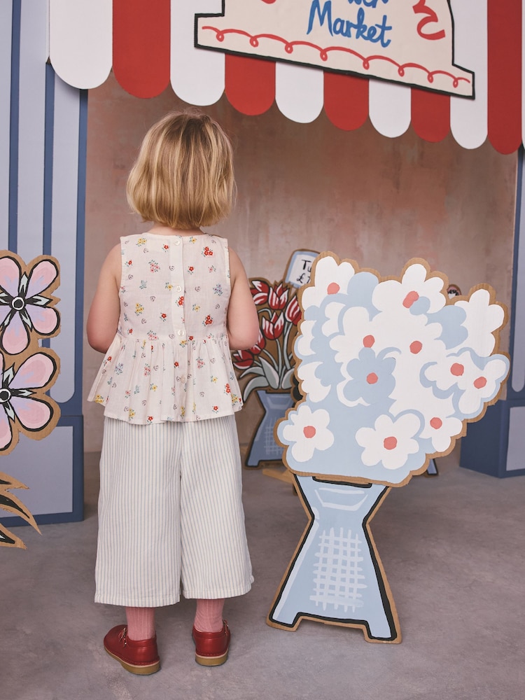 Blouse Main 70% Cotton, 30% Linen. Lining 100% Cotton. Trouser 100% Cotton.