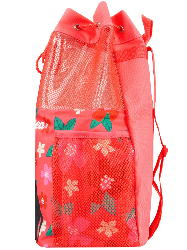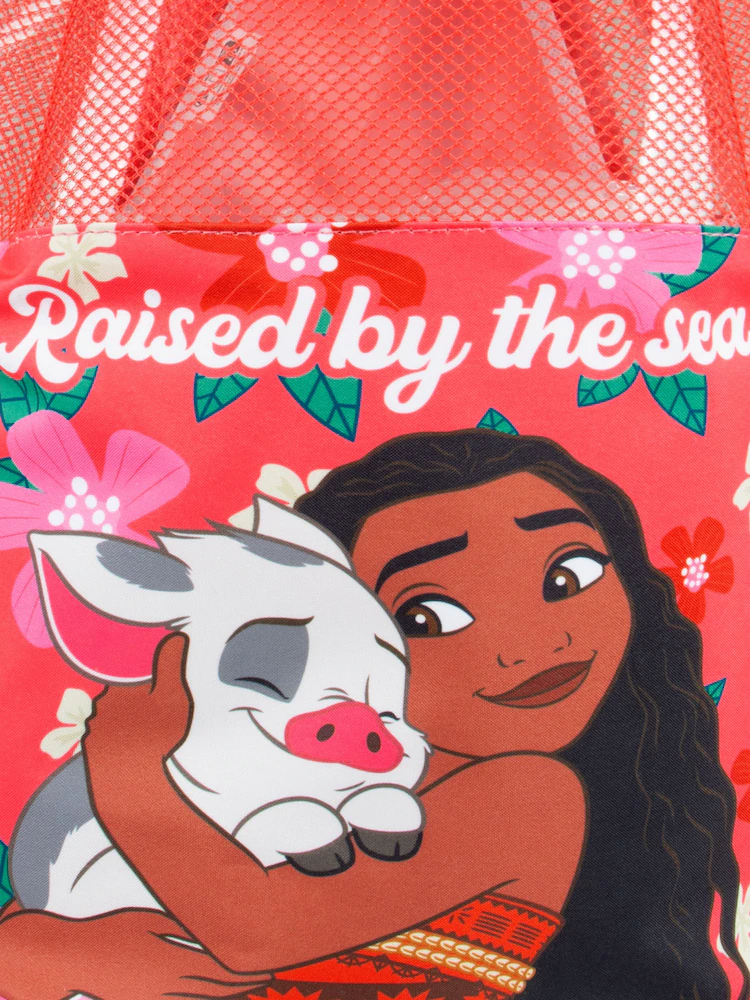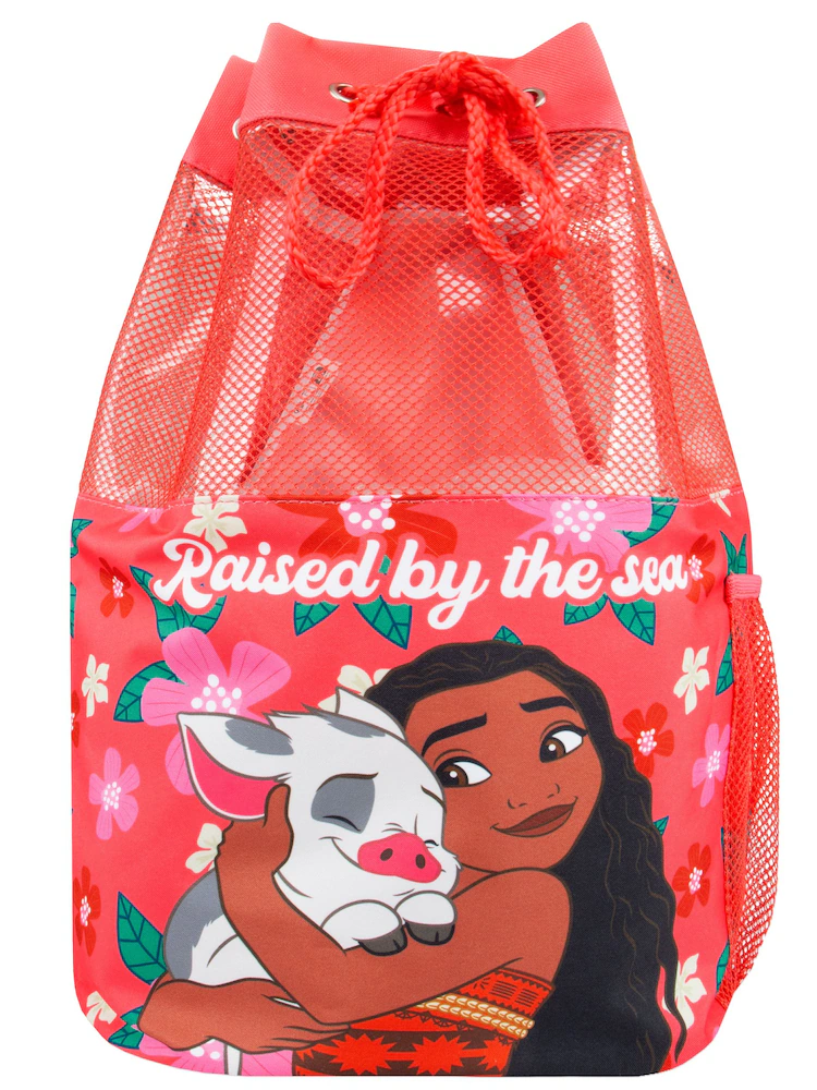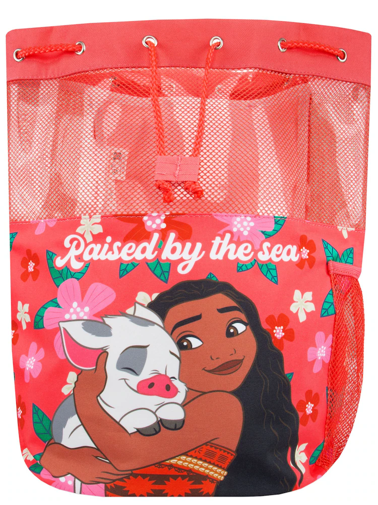 Make every splash extra magical with the Disney Moana Swim Bag. Designed especially for toddlers and preschoolers, this pink girls swim bag features a heart-warming design of Moana hugging Pua against a tropical island background, with the words “Raised by the sea” above. It’s the perfect companion for swimming lessons, beach adventures, pool days, and PE class. Lightweight and easy to carry, this swimming bag includes adjustable shoulder straps for a comfortable fit as your child grows. The drawstring opening allows little hands to quickly pack and access towels, swimwear, and goggles, while the mesh lining and side mesh pocket help keep items ventilated and organised. Sized at H 40 x W 36 x D 32 cm, it’s just right for small shoulders while still offering enough space for swim essentials. Whether used as a beach bag, pool bag, PE bag, or everyday backpack for girls, this Disney backpack adds a touch of island adventure to every outing. A must-have Moana bag for little Disney fans who dream of the sea.