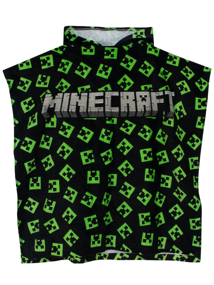 Creeper Coolness: Kids will love wrapping up in this Minecraft towel poncho featuring a repeating pattern of Creeper faces!