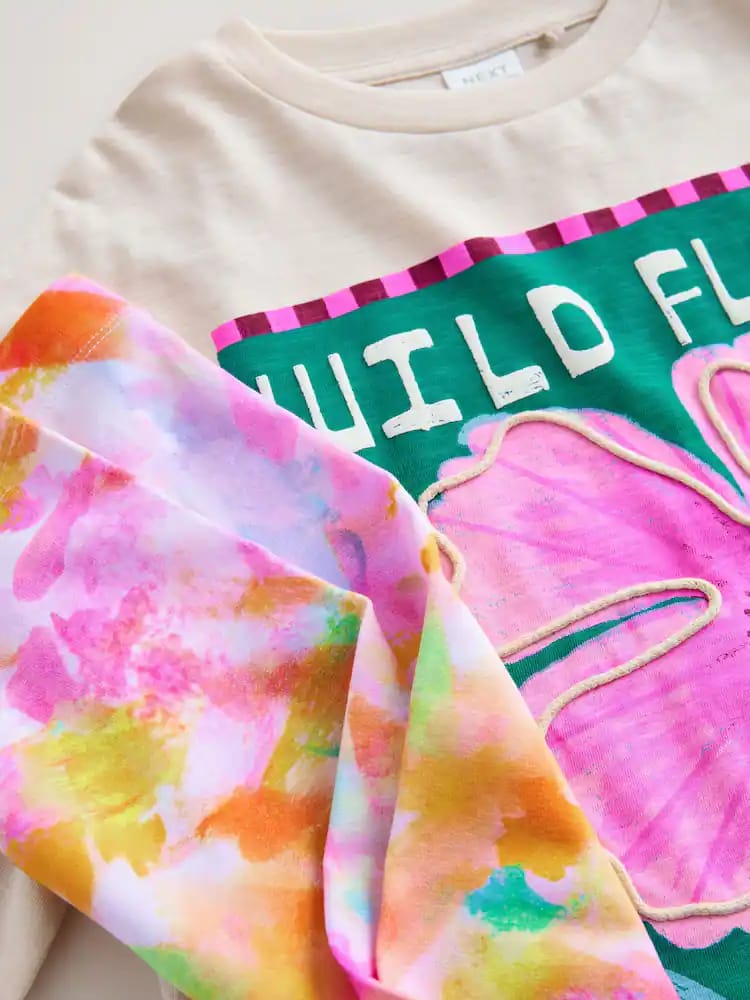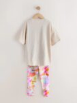 This T-Shirt and Leggings Set is a vibrant and coordinated complete outfit for everyday wear. The set features a bright pink t-shirt with a matching pair of patterned leggings.