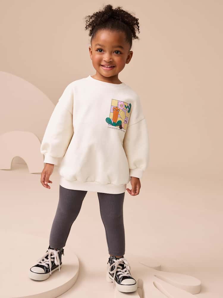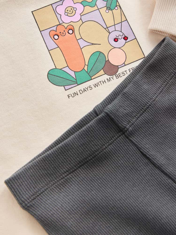 Sweater 85% Cotton, 15% Recycled polyester. Leggings 94% Cotton, 6% Elastane.