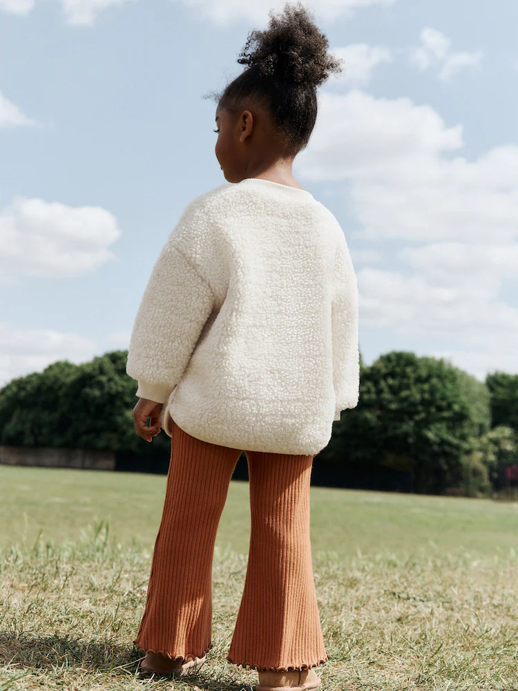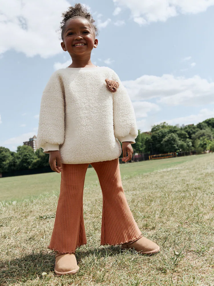 Perfect for cosy days, this 2-piece set includes a teddy borg sweatshirt and flare leggings. The soft sweatshirt features a subtle teddy bear detail, while the ribbed, flare leggings offer a comfortable and stylish fit. This set is a go-to for both lounging and playtime.
