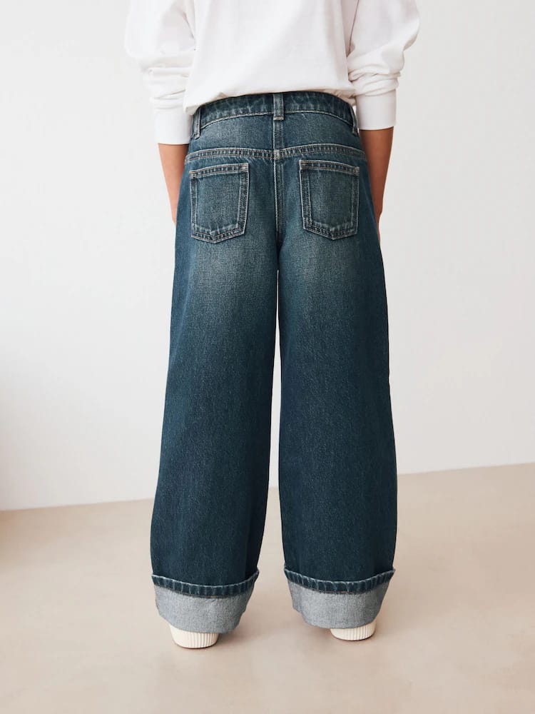 Add a trendy twist to their denim collection with these wide-leg, dark-blue jeans. The turn-up hem and classic button-and-zip front fastening provide a stylish look, while the functional pockets offer a practical finish. An ideal choice for a fashionable, everyday look.