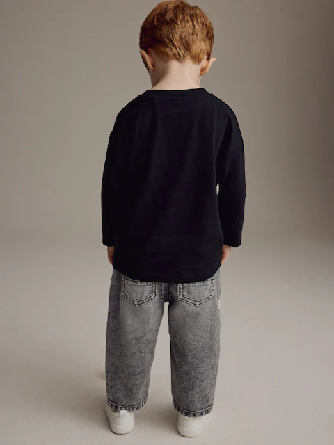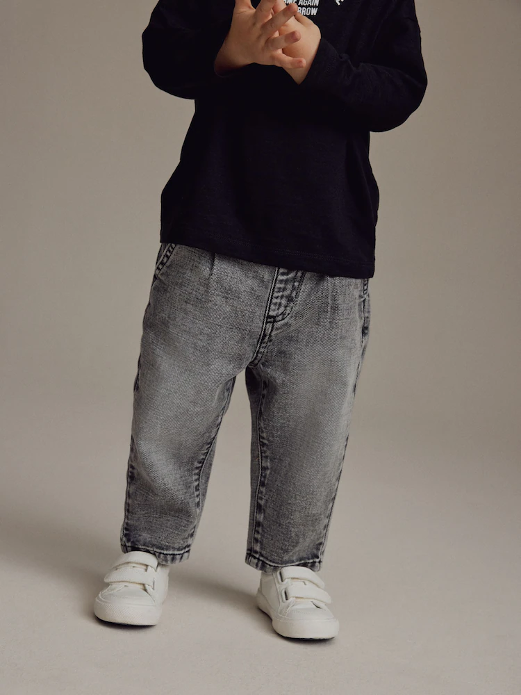 Update your little one’s wardrobe with this stylish pair of grey denim jeans feature a 90s-inspired design with a wide leg, an adjustable waistband, dual side and rear pockets and are finished with a branded tab.