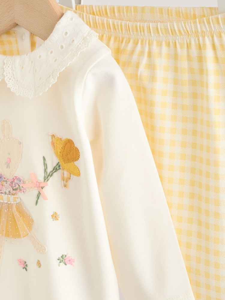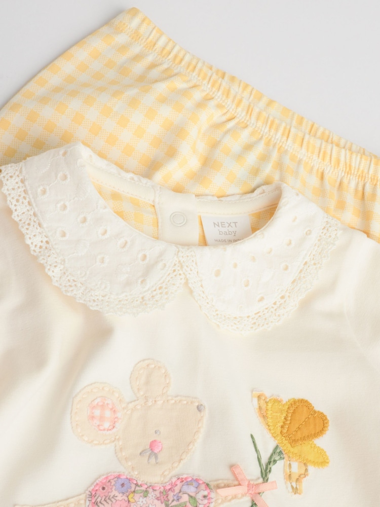 This sweet Ecru Long Sleeve Top and Legging Baby 2 Piece Set is a charming and gentle choice for your little one. The set features a long sleeve top with collar detail and delightful Fairy Mouse embroidered characters and 3D elements, paired with a comfy legging with elasticated waist.