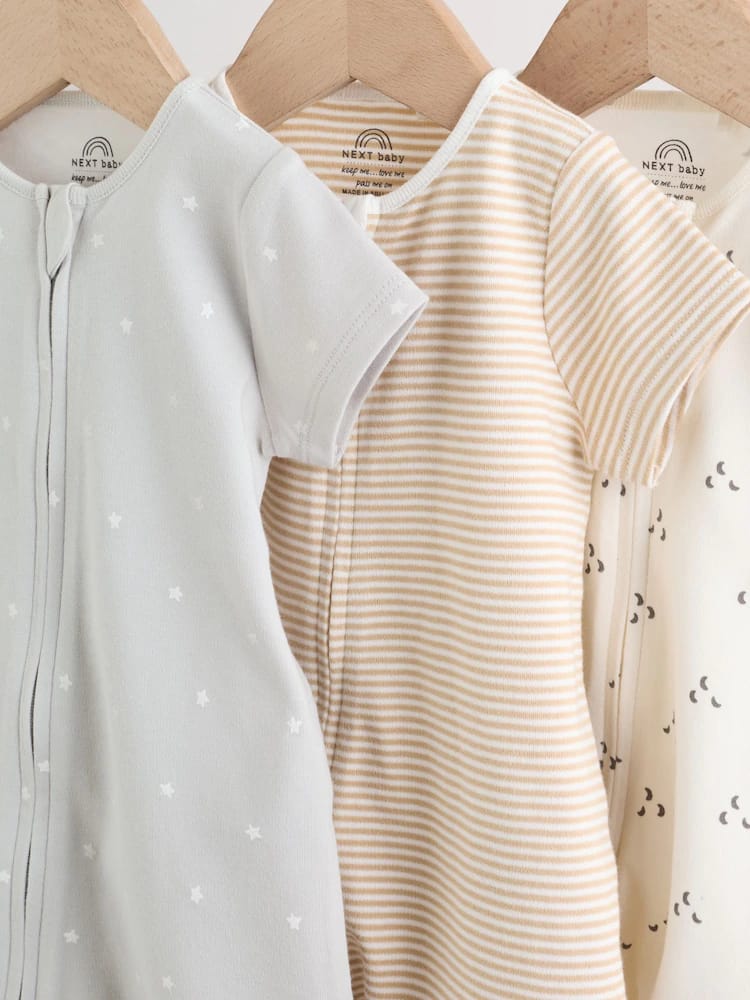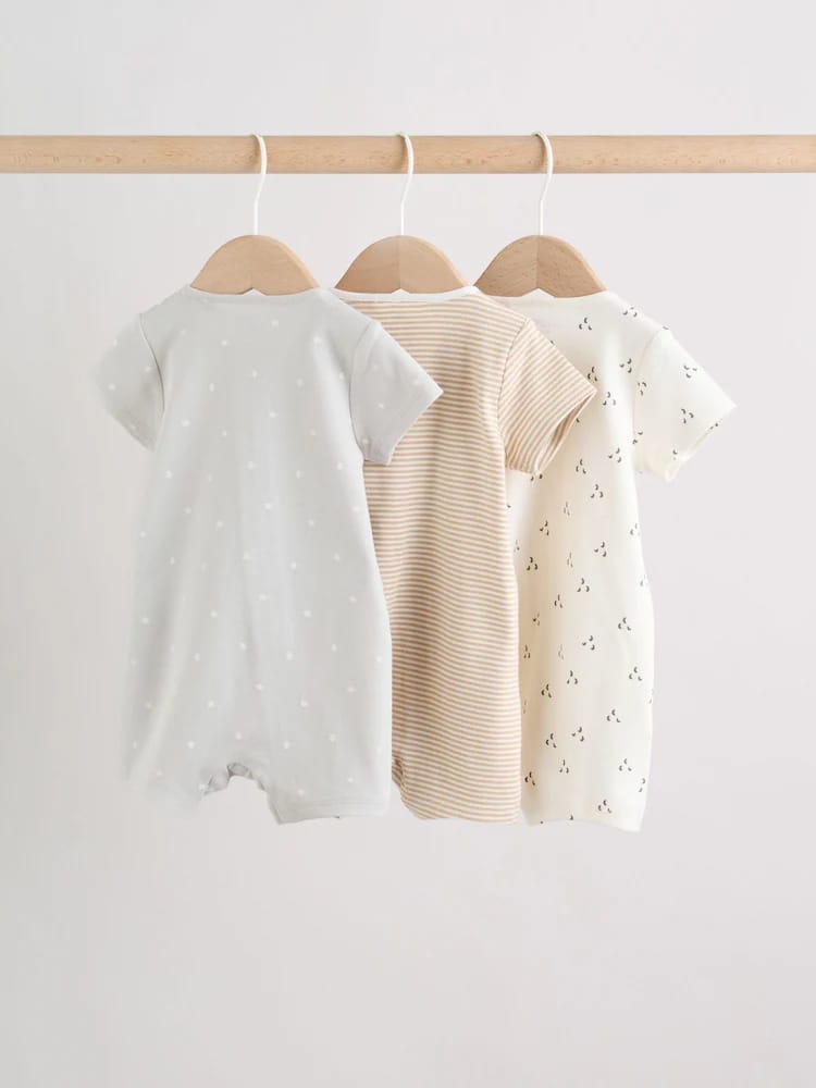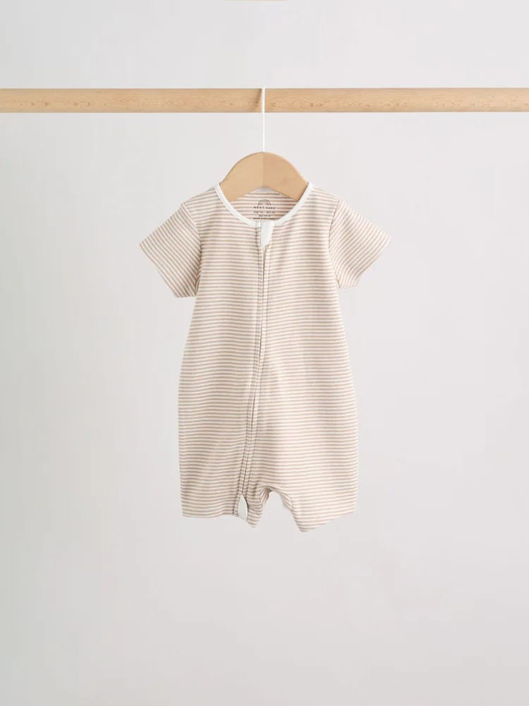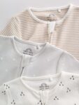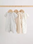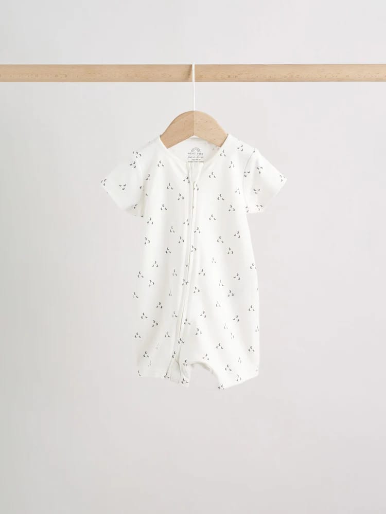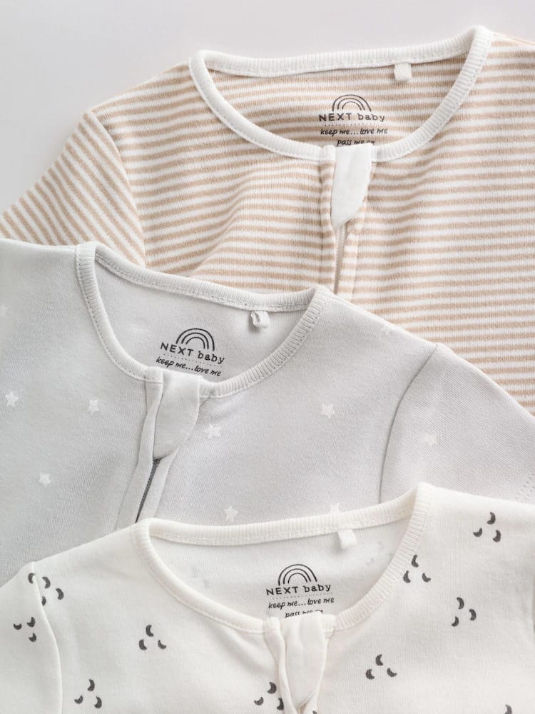 Keep your little one comfy and cute with the Ecru White Baby Rompers 3 Pack, a must-have bundle for any nursery. This set includes three essential rompers crafted from super soft cotton, ensuring comfort against delicate skin. Designed with busy parents in mind, each piece features a two-way zip fastening for easy dressing and quick changes. The set showcases versatile neutrals with charming prints – including classic stripes and subtle patterns – making them perfect for everyday wear or layering.