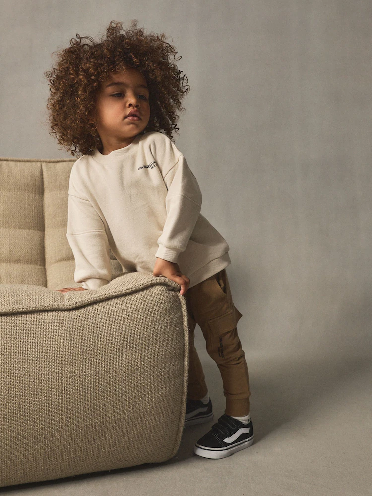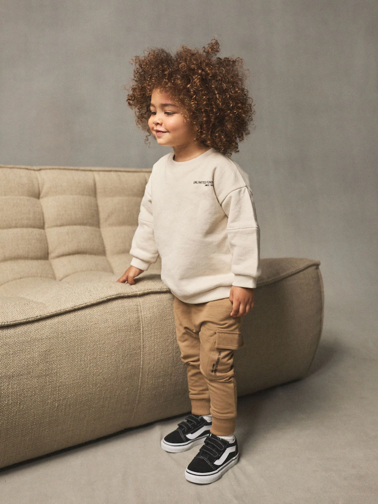 Sweater 80% Cotton, 20% Recycled polyester. Jogger 95% Cotton, 5% Elastane.