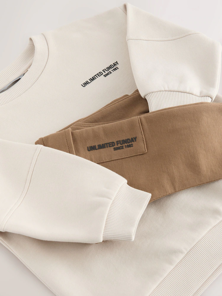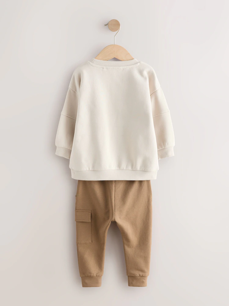 Ecru Off White Sweatshirt and Utility Joggers Set