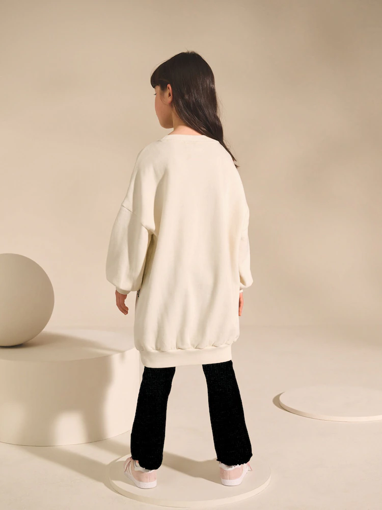 In cotton-rich jersey fabric, this stylish jumper dress will keep her cosy, featuring an oversized shape with a crewneck collar, ribbed hems and a woven label above the hem. Pairs perfectly with leggings or tights for the transitional months.