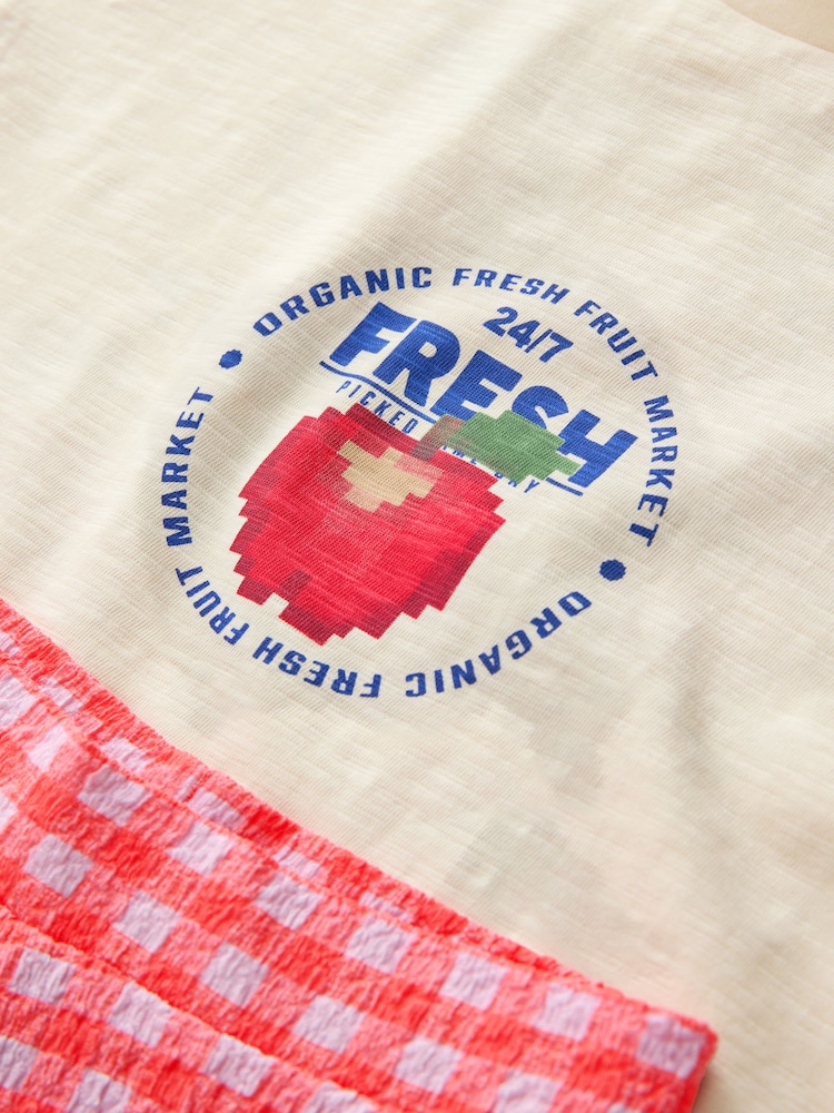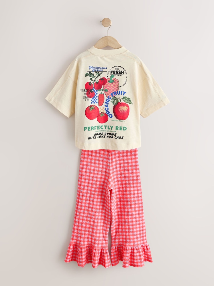 Fruit Graphic/Red Gingham T-Shirt and Frill Hem Trousers Set