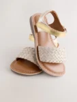 These practical Gold Leather Twist Sandals with Touch Fastening are great for Casual or Everyday wear. The sandals are made from Leather. They feature a secure Touch and Close fastening and a slip resistant durable sole.