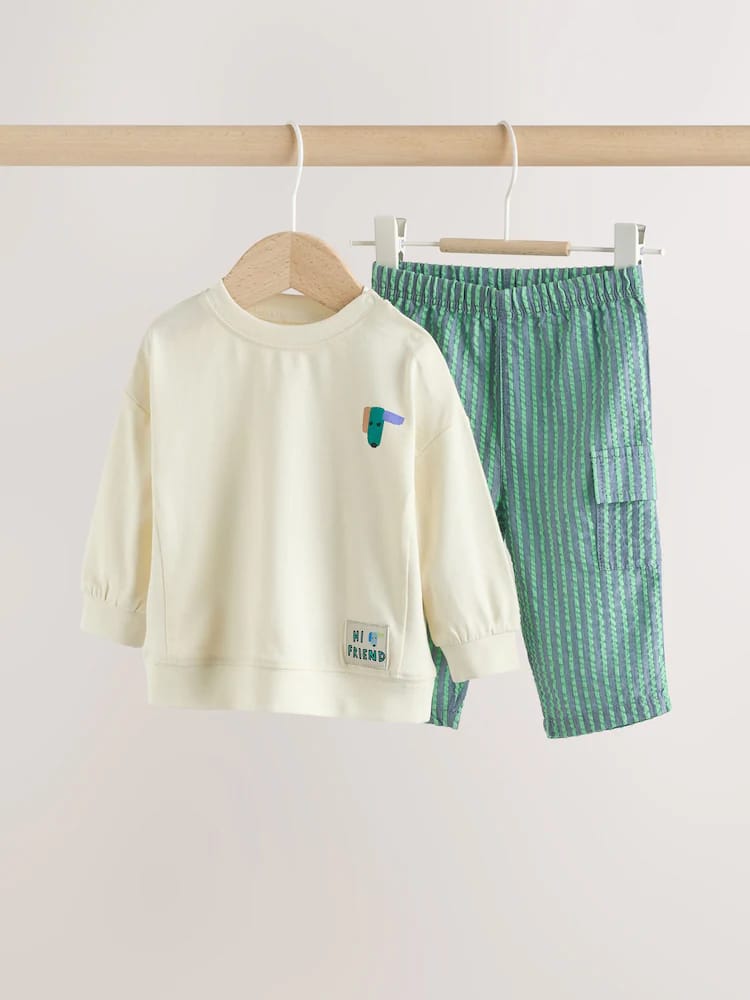 This 2-piece set is perfect for keeping your little one looking cool and feeling comfy, featuring a crewneck sweatshirt with a popper fastening alongside a pair of printed leggings with an elasticated waistband.
