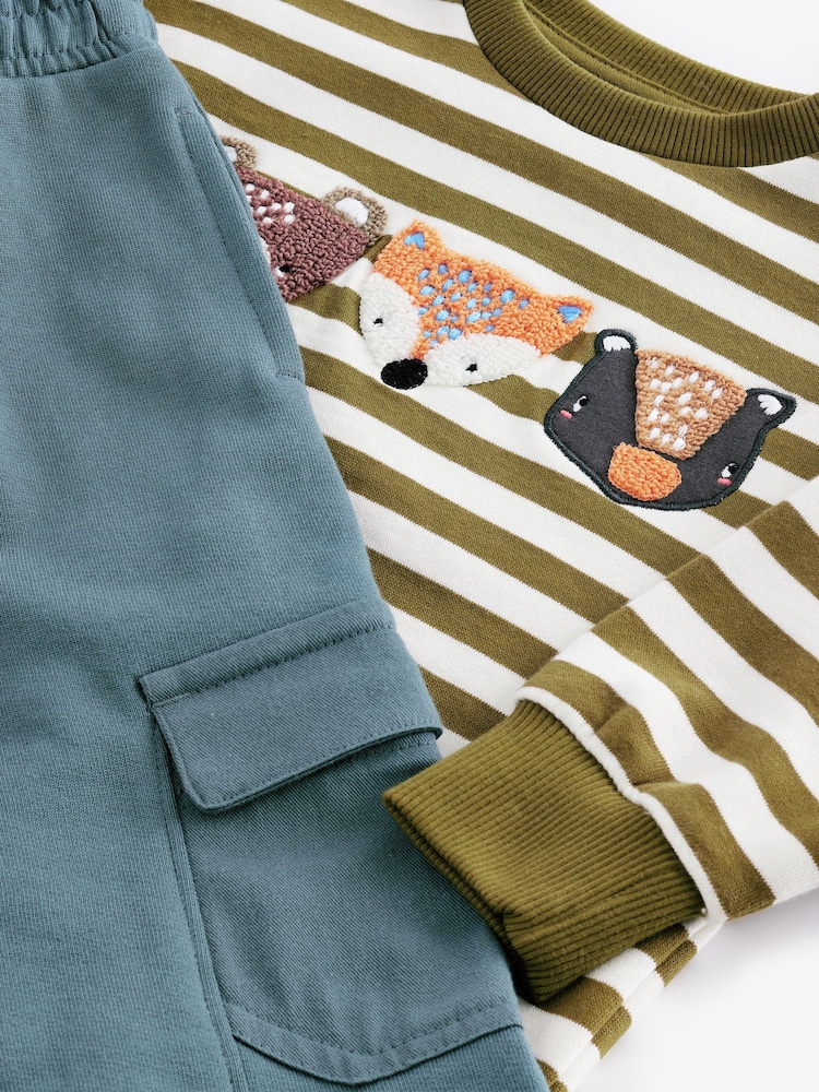 With all the style and comfort of a classic sweatshirt and joggers set and the added twist of a fun graphic print, this set is an effortless choice for playtime and lounging. Designed in a cotton rich sweat fabric with added stretch, ribbed cuffs and an adjustable waist for easy movement and all-day comfort.