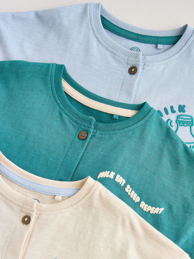 3 x Romper Main 100% Cotton. Trim 95% Cotton, 5% Elastane.