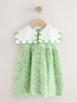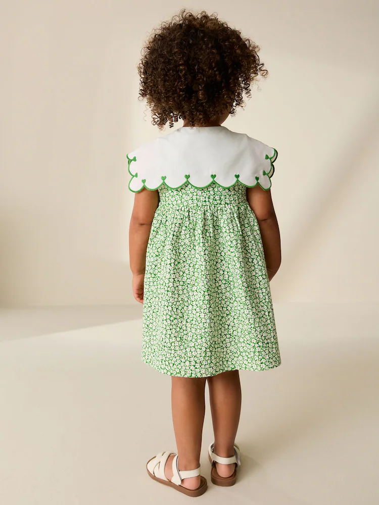 Brighten up her look with this Green sleeveless collar dress. Made from pure cotton, it features an all over ditsy floral print, a button front and embroidered collar detailing. Perfect for her summer adventures, pair with sandals for a cute look.
