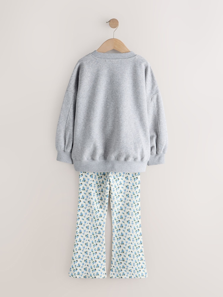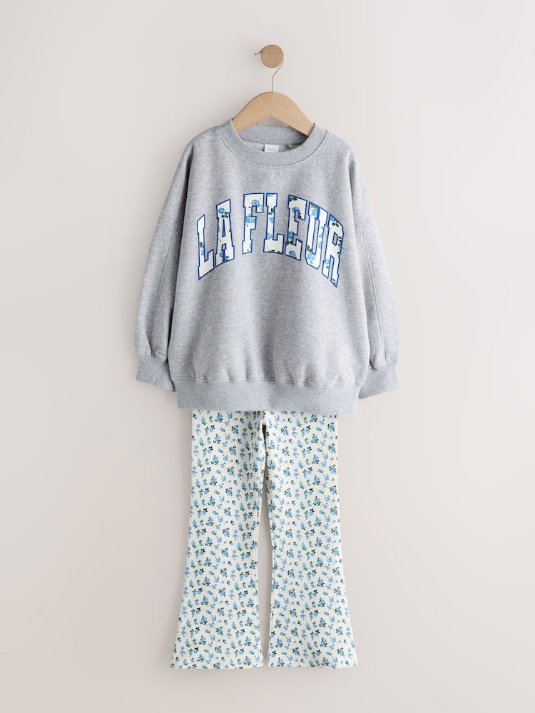 Introduce contemporary comfort to the casual wardrobe with this stylish Grey/Floral Slogan Sweatshirt and Flare Leggings Set. Crafted from soft cotton blend fabric, the set features a relaxed fit slogan sweatshirt paired with on-trend floral printed leggings boasting a flattering flare leg fit. This comfortable set offers an effortless, fashionable outfit.