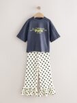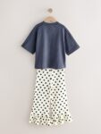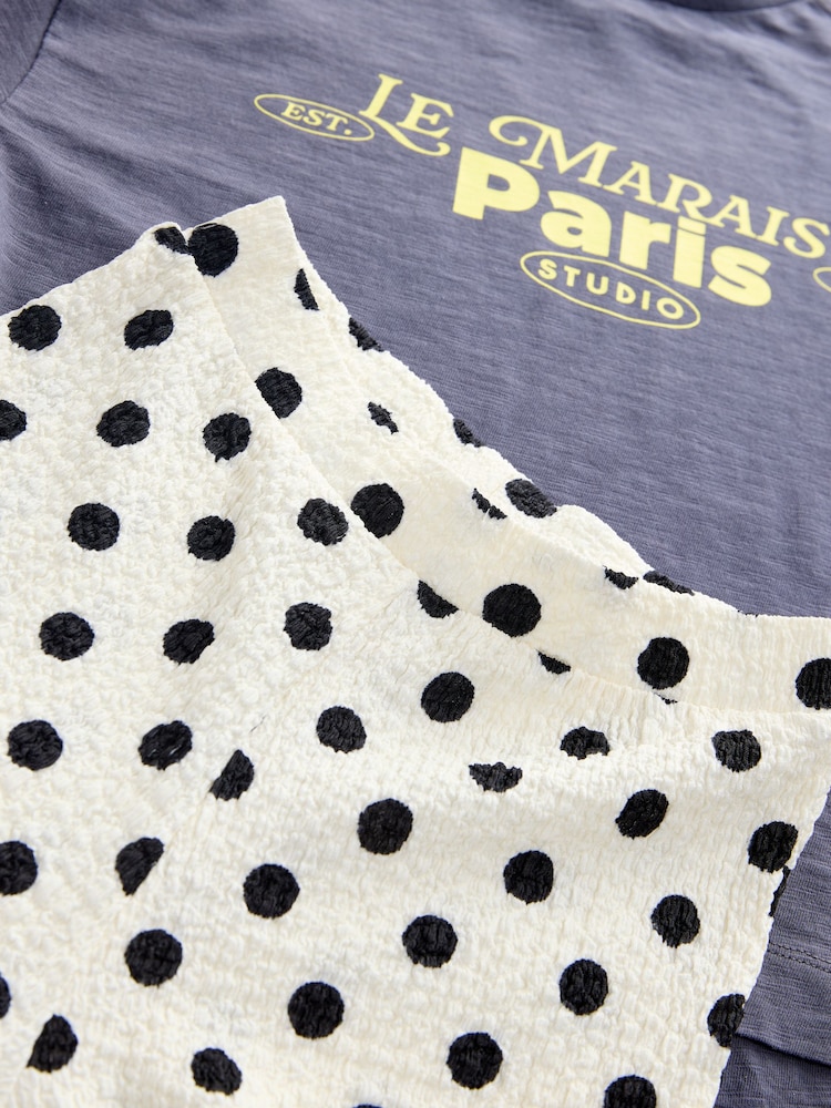 Grey/Spot Slogan T-Shirt and Frill Hem Trousers Set