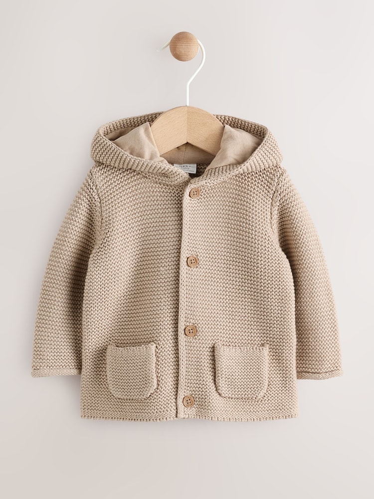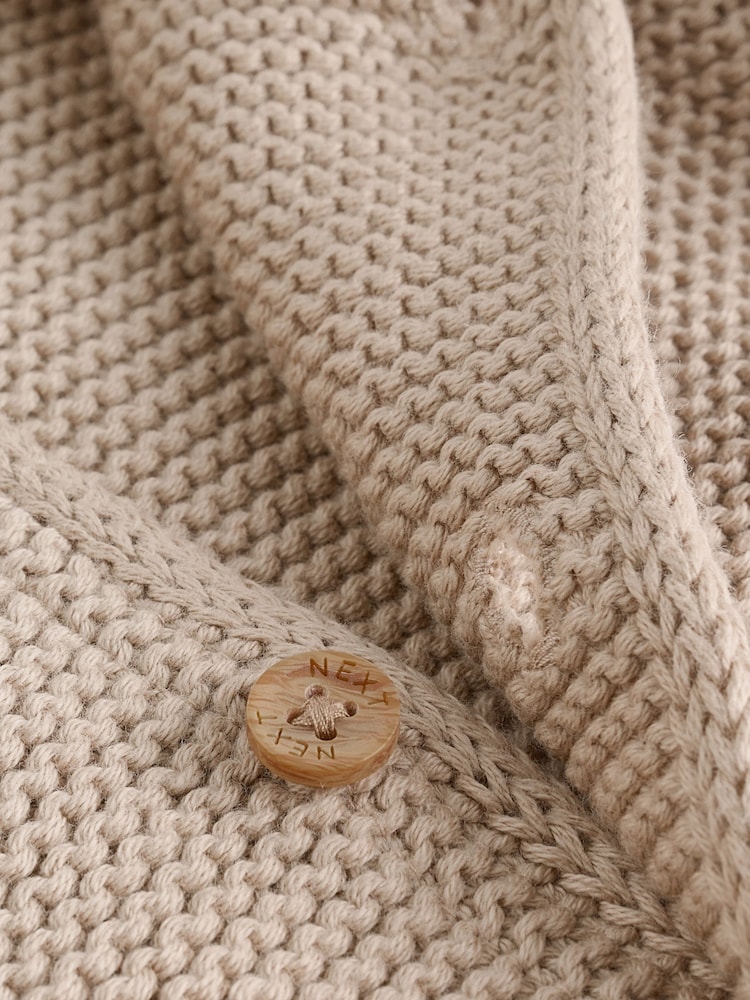 Comfy, cosy and incredibly cute, this pure-cotton knitted Natural cardigan has 3D ear detailing to the hood, a button-up fastening and dual patch pockets, finished with a textured feel.